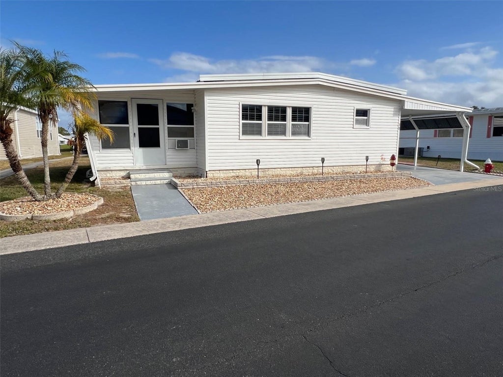 NEW LOWER PRICE! Step into the epitome of easy living in the heart of the popular 55+ community of Palm Hill Country Club! This fully furnished turnkey home invites you to embrace a lifestyle of convenience and leisure, with every detail thoughtfully prepared for you. For just $554.00 per month, enjoy comprehensive maintenance covering water, sewer, garbage, lawn care, cable, and internet. Beyond the home, a world of activities awaits—challenge friends to golf, unwind in the jacuzzi, take a refreshing dip in the pool, or engage in friendly competition with tennis, bocce ball, shuffleboard, and horseshoes. With endless ways to connect and relax, this home offers more than a place to live; it’s an invitation to experience a community like no other. INTERIOR: The moment you walk into this beautifully maintained home, you’re immediately greeted by tasteful decor and inviting furniture that set the tone for relaxed, yet stylish living. The updated kitchen is a true centerpiece, featuring sleek ceramic tile flooring, appliances including a fridge with an ice maker, range, oven, microwave, and a charming eat-in area. The kitchen door, complete with a built-in blind, adds an extra element of privacy. Additional ceramic tiling extends into the guest bathroom, while the master bath boasts waterproof vinyl flooring for durability and style. The remainder of the home is outfitted with warm laminate flooring that ties the space together seamlessly. Updated windows, ceiling fans, and timeless Plantation shutters add to the enhancements of the home. The floor plan ensures the flow continues into the bright and airy living room. This space opens to a raised Florida room, complete with a sleeper sofa, air conditioning, and curtains—perfect for accommodating overnight guests. The large primary bedroom offers both comfort and efficiency, with a spacious walk-in closet, built-in storage, and an en suite bath featuring a newly updated walk-in shower. The guest bedroom provides liberal space and includes a convenient door to the outdoor shed, while the guest bath shines with its stylish updated shower and tub combo. This home is a perfect blend of function and flair, promising effortless living and timeless appeal. EXTERIOR: This home is a standout, offering exceptional value and style for just $105,000, complete with a share. The exterior boasts low-maintenance vinyl siding, providing both durability and an appealing aesthetic that enhances the home’s curb appeal. A spacious two-car carport offers shelter for your vehicles along with a brand new roof over 2/2025, offering lasting reassurance. You'll find modern comfort with a 2023 central heat and air system that promises year-round climate control. The bonus of a well-equipped shed features a stackable washer and dryer for ultimate accessibility, along with extra storage space for outdoor tools, bikes, and all your gear. Whether you're looking to enjoy easy living or invest in a home that checks all the boxes, this is the perfect place to call your own.